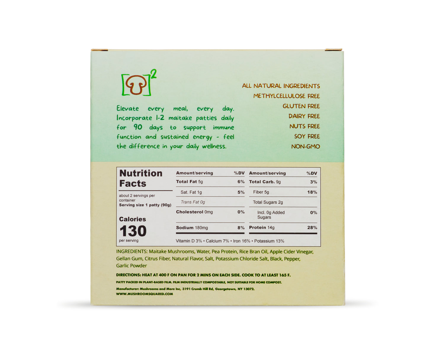 Crafted from real maitake mushrooms and clean, whole-food ingredients, the Mushroom Square Patty delivers juicy, umami-rich flavor with functional nutrition that fuels — not inflames.