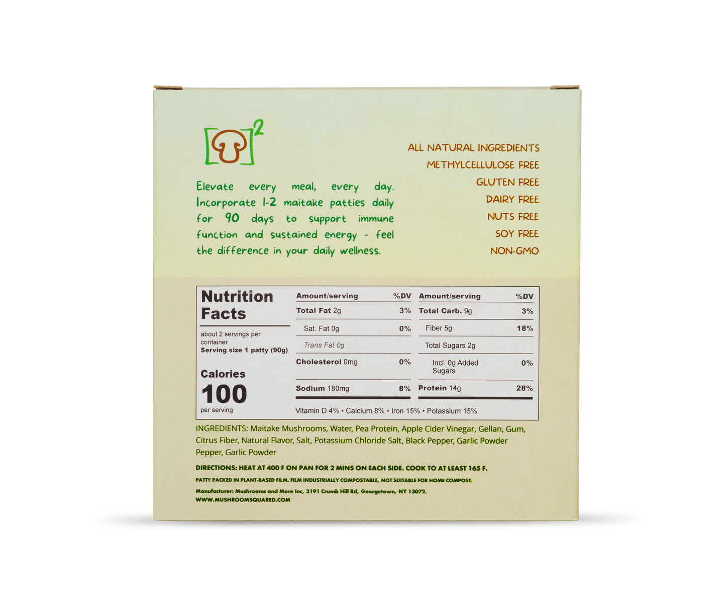 Crafted from real maitake mushrooms and nutrient-dense plants, the Low Fat Mushroom Square Patty delivers the same rich, umami bite with less oil and fewer calories.